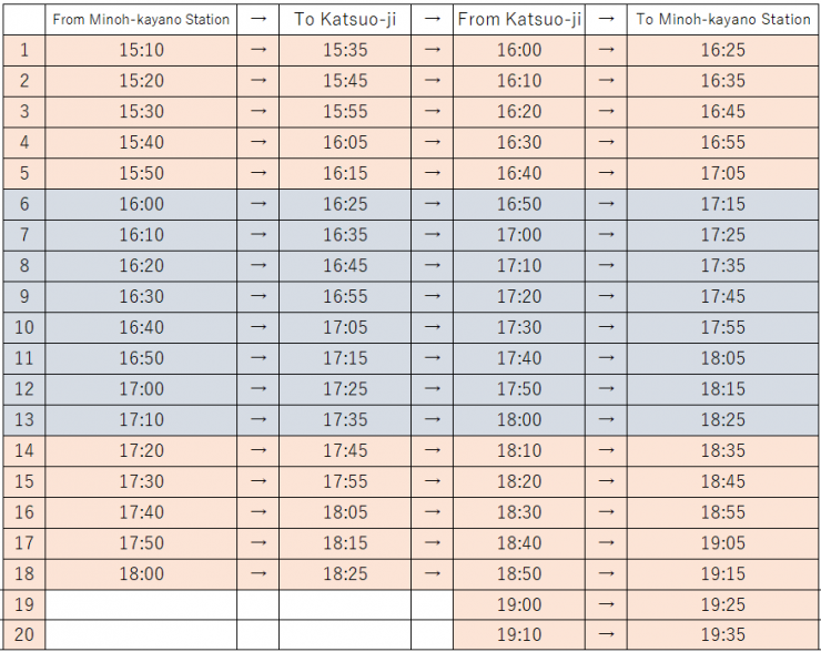 ※Please be ready at the bus stop by 10 minutes earlier than the departure time.