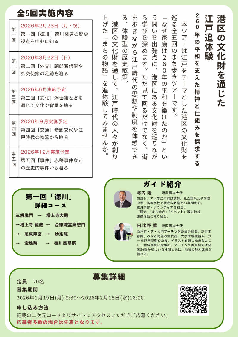 本ツアーは江戸をテーマとした港区の文化財を巡る全5回のまち歩きツアーです。