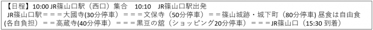 | ■JR篠山口駅(西口) ~ JR篠山口駅(西口) 各日観光箇所は異なります。 |